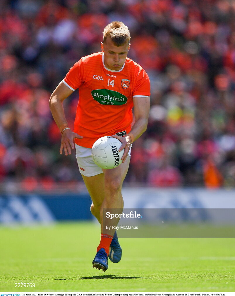 26 June 2022; Rian O'Neill of Armagh during the GAA Football All-Ireland Senior Championship Quarter-Final match between Armagh and Galway at Croke Park, Dublin. Photo by Ray McManus/Sportsfile