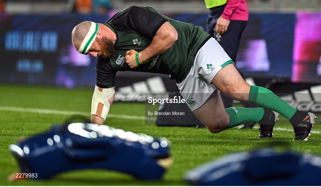 2 July 2022; Former Ireland international Michael Bent warms up before the Steinlager Series match between the New Zealand and Ireland at Eden Park in Auckland, New Zealand. Photo by Brendan Moran/Sportsfile