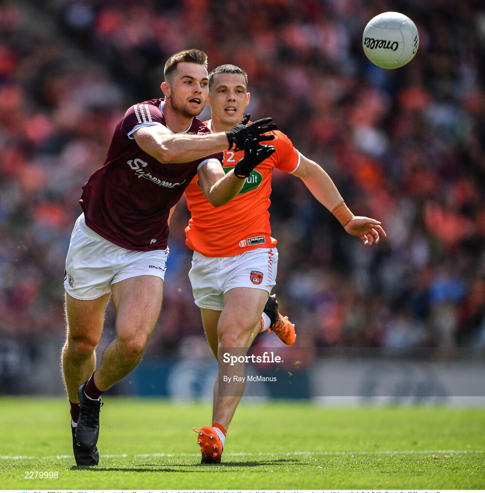 26 June 2022; Liam Silke of Galway in action against James Morgan of Armagh during the GAA Football All-Ireland Senior Championship Quarter-Final match between Armagh and Galway at Croke Park, Dublin. Photo by Ray McManus/Sportsfile