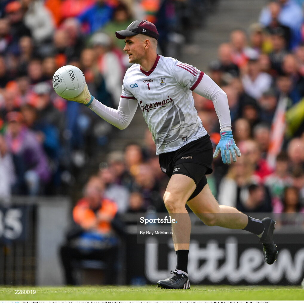 26 June 2022; Galway goalkeeper Conor Gleeson during the GAA Football All-Ireland Senior Championship Quarter-Final match between Armagh and Galway at Croke Park, Dublin. Photo by Ray McManus/Sportsfile
