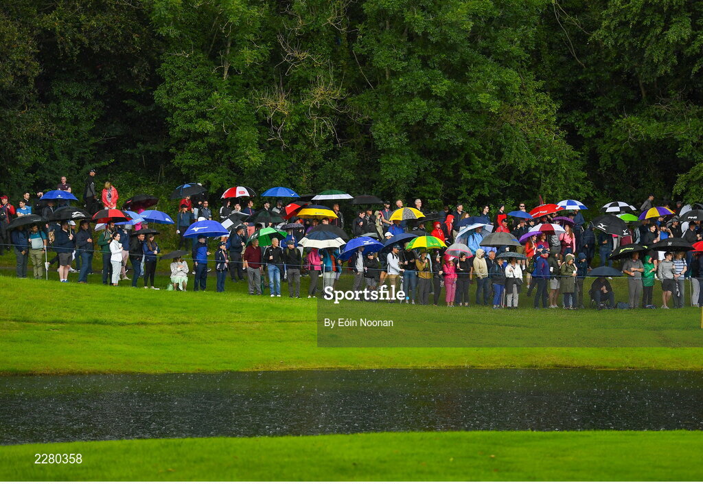2 July 2022; Spectators during a rain shower on day three of the Horizon Irish Open Golf Championship at Mount Juliet Golf Club in Thomastown, Kilkenny. Photo by Eóin Noonan/Sportsfile
