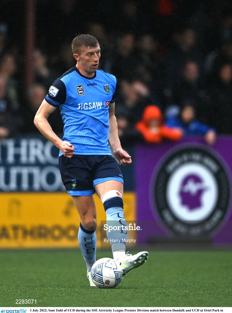 1 July 2022; Sam Todd of UCD during the SSE Airtricity League Premier Division match between Dundalk and UCD at Oriel Park in Dundalk, Louth. Photo by Harry Murphy/Sportsfile