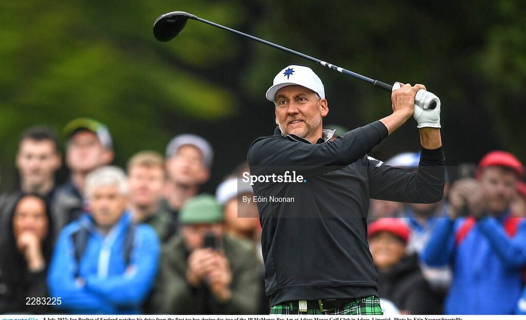 5 July 2022; Ian Poulter of England watches his drive from the first tee box during day two of the JP McManus Pro-Am at Adare Manor Golf Club in Adare, Limerick. Photo by Eóin Noonan/Sportsfile