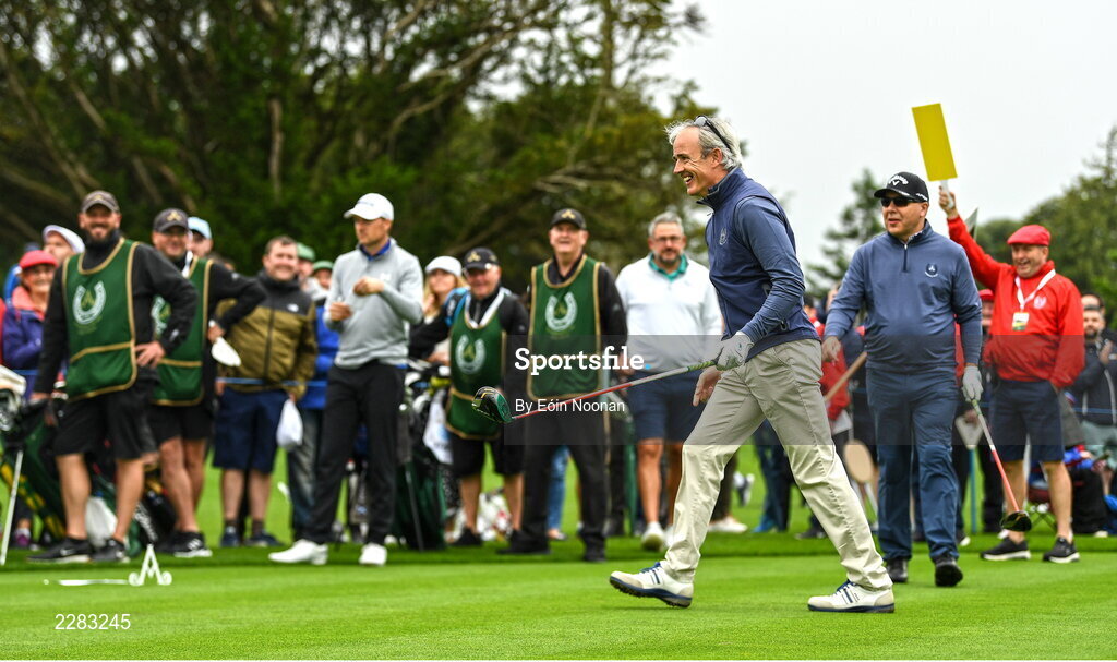 5 July 2022; Fromer jockey Ruby Walsh reacts to his drive on the first tee box during day two of the JP McManus Pro-Am at Adare Manor Golf Club in Adare, Limerick. Photo by Eóin Noonan/Sportsfile