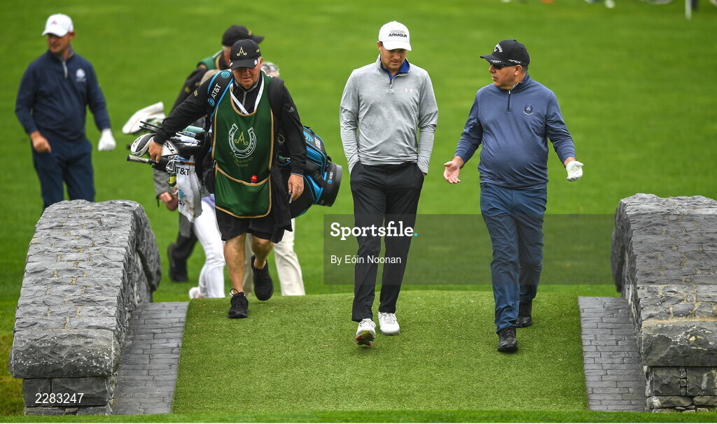 5 July 2022; Jordan Speith of USA and Justin Carthy, right, during day two of the JP McManus Pro-Am at Adare Manor Golf Club in Adare, Limerick. Photo by Eóin Noonan/Sportsfile