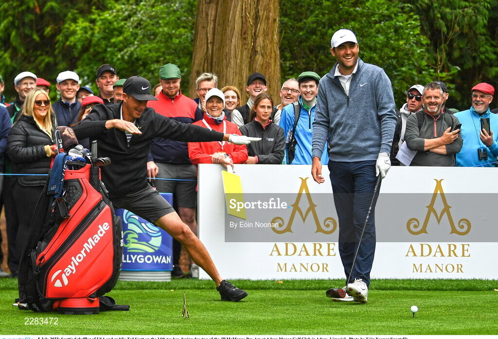 5 July 2022; Scottie Scheffler of USA and caddie Ted Scott on the 14th tee box during day two of the JP McManus Pro-Am at Adare Manor Golf Club in Adare, Limerick. Photo by Eóin Noonan/Sportsfile