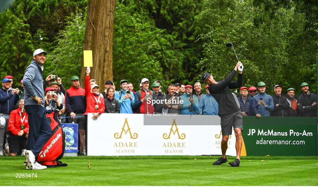 5 July 2022; Ted Scott, caddie to Scottie Scheffler of USA, tees off on the 14th tee box during day two of the JP McManus Pro-Am at Adare Manor Golf Club in Adare, Limerick. Photo by Eóin Noonan/Sportsfile