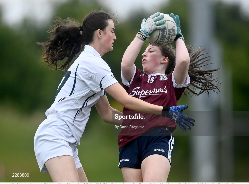 5 July 2022; Action from the shield final between Kildare and Galway during the LGFA National Under 17 Player Development Programme Festival Day at the GAA National Games Development Centre in Abbotstown, Dublin. Photo by David Fitzgerald/Sportsfile