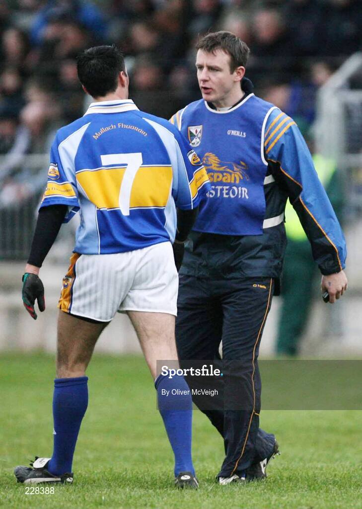 12 November 2006; Mullahoran manager Justin McNulty talks to Paul Brady during the game. AIB Ulster Senior Football Championship Quarter-Final, Crossmaglen Rangers v Mullahoran, Oliver Plunkett Park, Crossmaglen, Co Armagh. Picture credit: Oliver McVeigh / SPORTSFILE