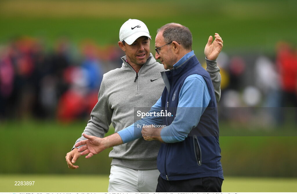 5 July 2022; Rory McIlroy of Northern Ireland with former Republic of Ireland manager Martin O'Neill during day two of the JP McManus Pro-Am at Adare Manor Golf Club in Adare, Limerick. Photo by Eóin Noonan/Sportsfile