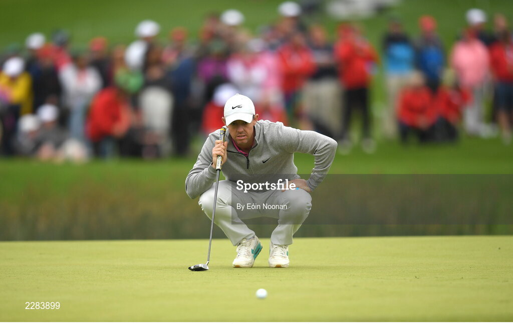 5 July 2022; Rory McIlroy of Northern Ireland lines up a putt on the 18th green during day two of the JP McManus Pro-Am at Adare Manor Golf Club in Adare, Limerick. Photo by Eóin Noonan/Sportsfile