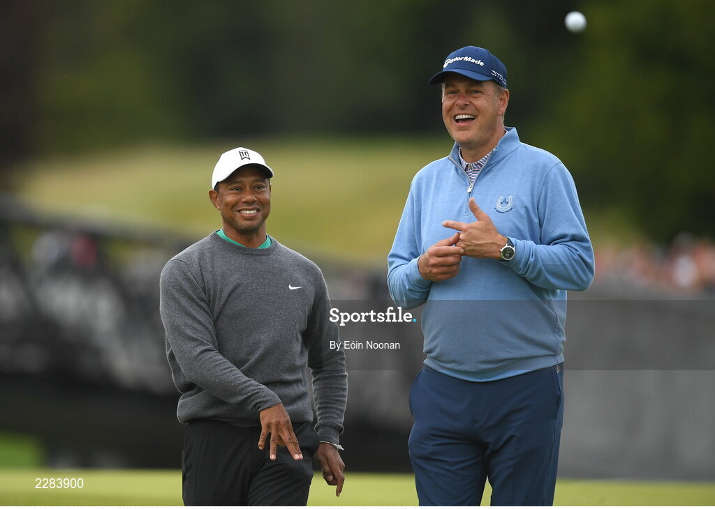 5 July 2022; Tiger Woods of USA with British entrepreneur, businessman, and reality television personality Peter Jones during day two of the JP McManus Pro-Am at Adare Manor Golf Club in Adare, Limerick. Photo by Eóin Noonan/Sportsfile