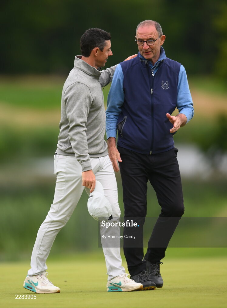 5 July 2022; Rory McIlroy of Northern Ireland and Former Republic of Ireland manager Martin O'Neill after their round on day two of the JP McManus Pro-Am at Adare Manor Golf Club in Adare, Limerick. Photo by Ramsey Cardy/Sportsfile