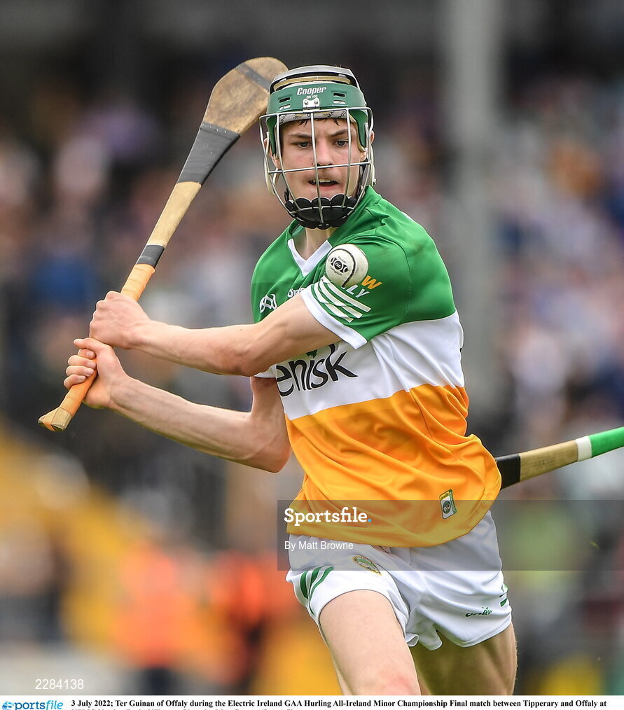 3 July 2022; Ter Guinan of Offaly during the Electric Ireland GAA Hurling All-Ireland Minor Championship Final match between Tipperary and Offaly at UPMC Nowlan Park, Kilkenny. Photo by Matt Browne/Sportsfile