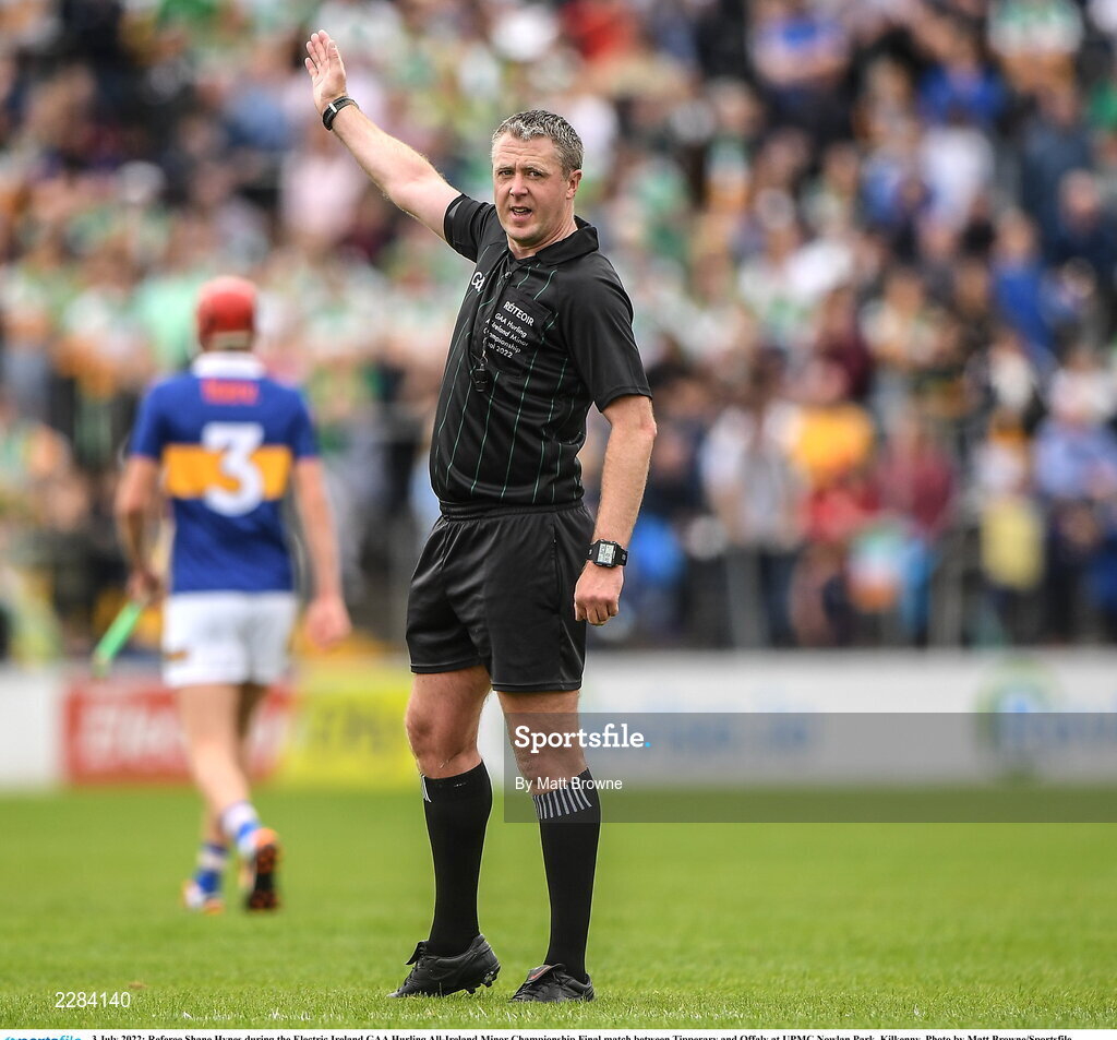 3 July 2022; Referee Shane Hynes during the Electric Ireland GAA Hurling All-Ireland Minor Championship Final match between Tipperary and Offaly at UPMC Nowlan Park, Kilkenny. Photo by Matt Browne/Sportsfile