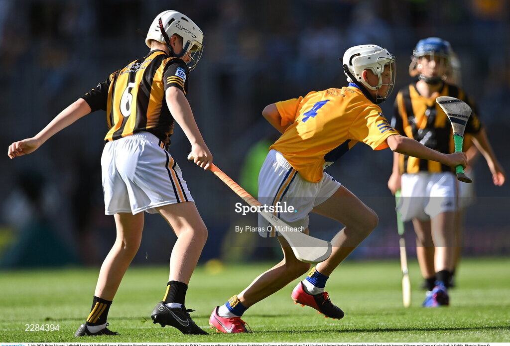 2 July 2022; Dylan Murphy, Ballyduff Lower NS Ballyduff Lower, Kilmeaden Waterford, representing Clare during the INTO Cumann na mBunscol GAA Respect Exhibition Go Games at half-time of the GAA Hurling All-Ireland Senior Championship Semi-Final match between Kilkenny and Clare at Croke Park in Dublin. Photo by Piaras Ó Mídheach/Sportsfile