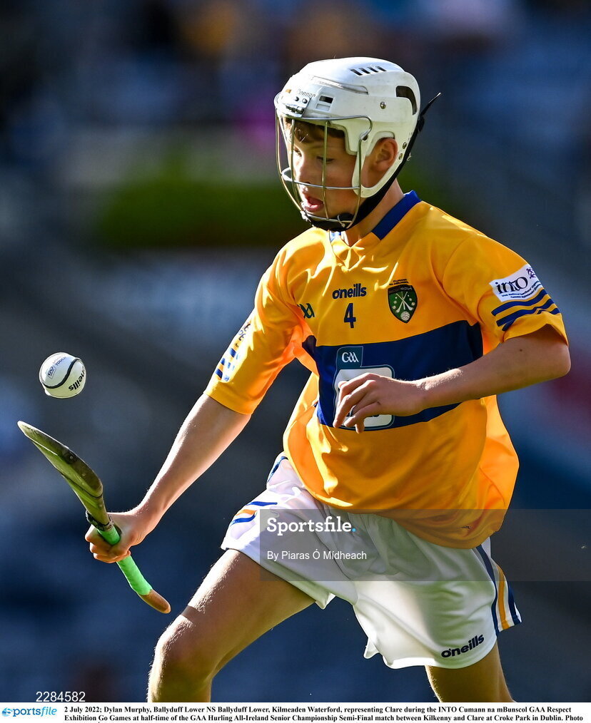 2 July 2022; Dylan Murphy, Ballyduff Lower NS Ballyduff Lower, Kilmeaden Waterford, representing Clare during the INTO Cumann na mBunscol GAA Respect Exhibition Go Games at half-time of the GAA Hurling All-Ireland Senior Championship Semi-Final match between Kilkenny and Clare at Croke Park in Dublin. Photo by Piaras Ó Mídheach/Sportsfile