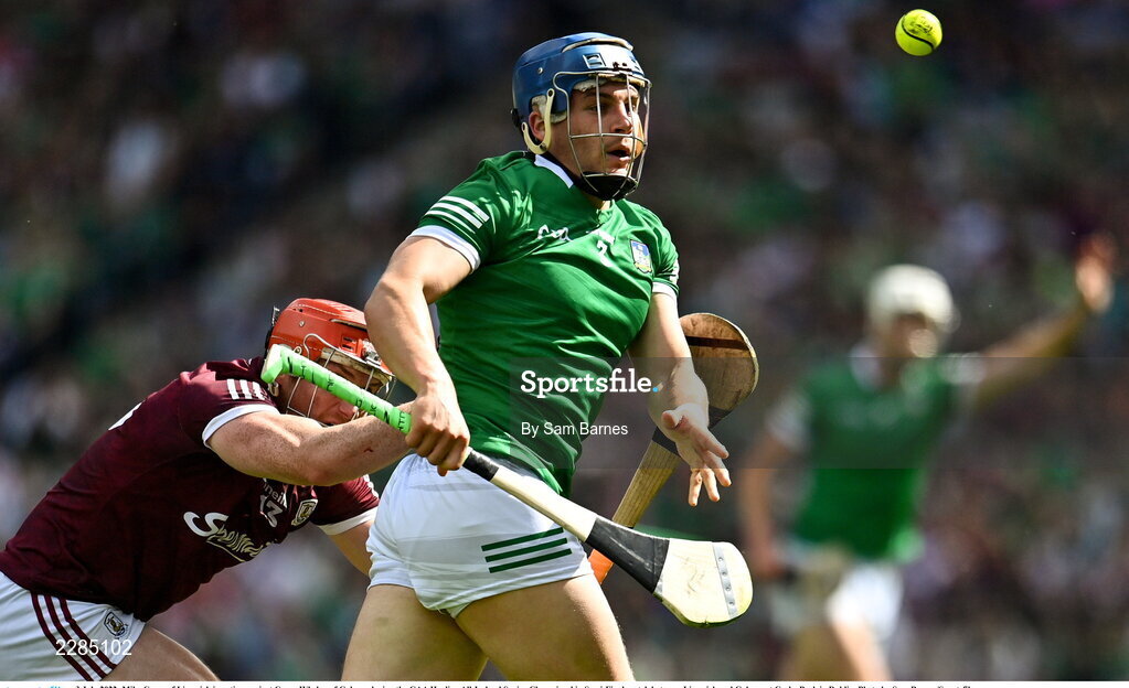 3 July 2022; Mike Casey of Limerick in action against Conor Whelan of Galway during the GAA Hurling All-Ireland Senior Championship Semi-Final match between Limerick and Galway at Croke Park in Dublin. Photo by Sam Barnes/Sportsfile