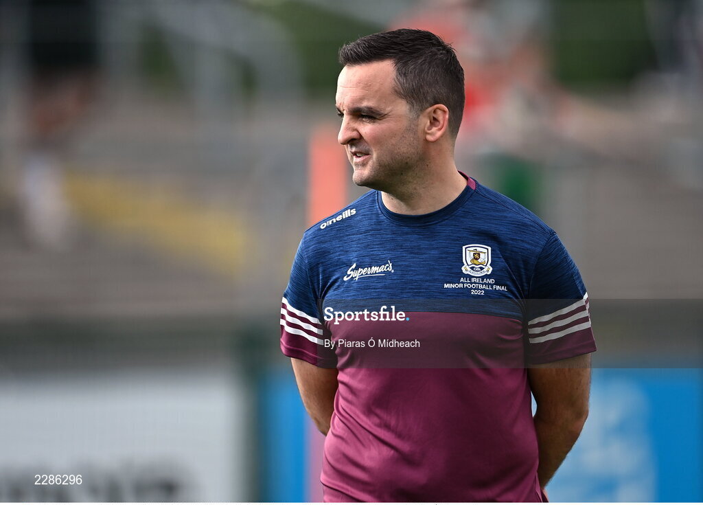 8 July 2022; Galway manager Alan Glynn before the Electric Ireland GAA Football All-Ireland Minor Championship Final match between Galway and Mayo at Dr Hyde Park in Roscommon. Photo by Piaras Ó Mídheach/Sportsfile