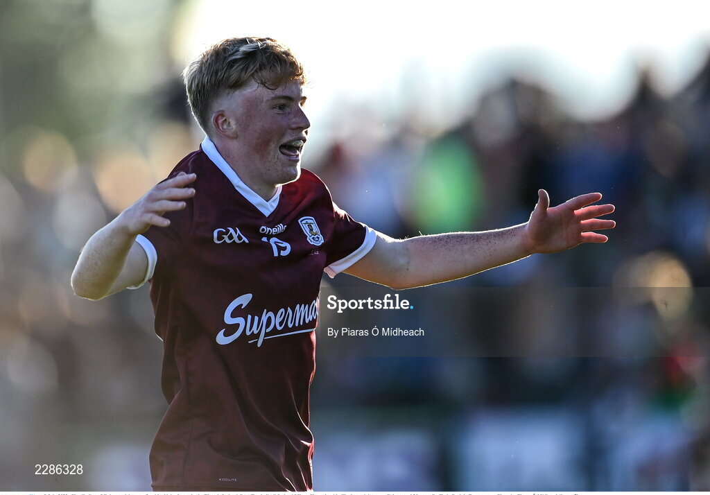 8 July 2022; Charlie Cox of Galway celebrates after his side's victory in the Electric Ireland GAA Football All-Ireland Minor Championship Final match between Galway and Mayo at Dr Hyde Park in Roscommon. Photo by Piaras Ó Mídheach/Sportsfile