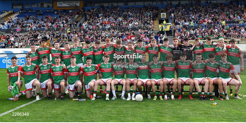 8 July 2022; The Mayo squad before the Electric Ireland GAA Football All-Ireland Minor Championship Final match between Galway and Mayo at Dr Hyde Park in Roscommon. Photo by Piaras Ó Mídheach/Sportsfile