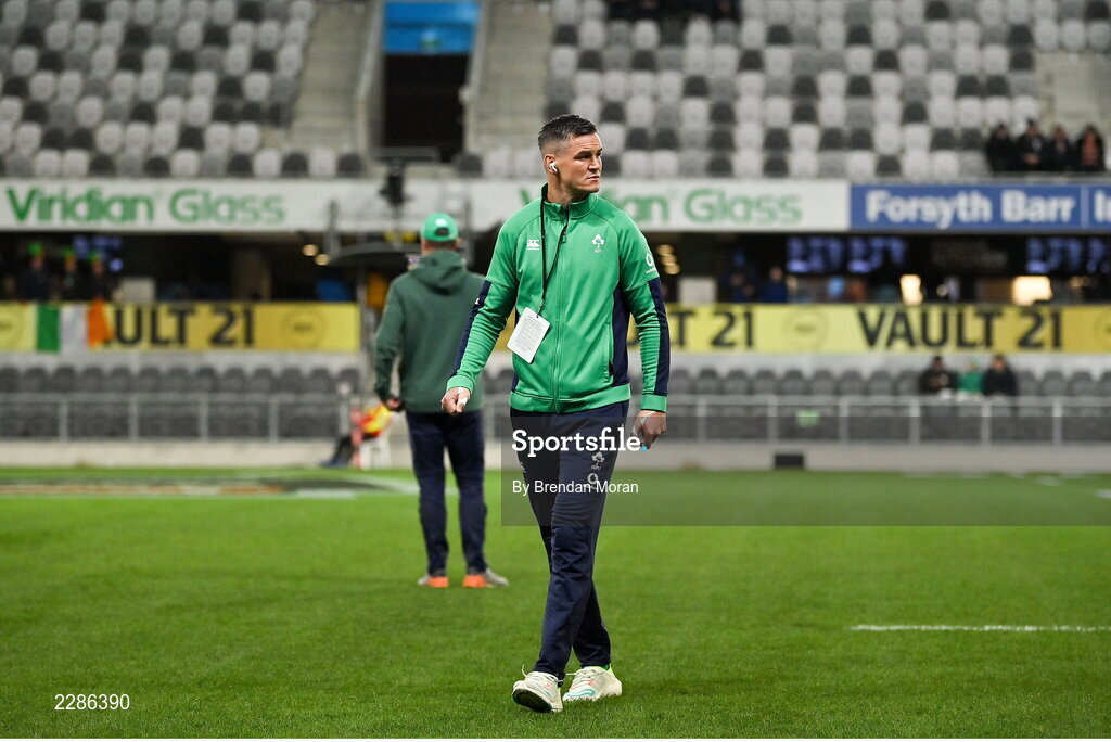 9 July 2022; Ireland captain Jonathan Sexton walks the pitch before the Steinlager Series match between the New Zealand and Ireland at the Forsyth Barr Stadium in Dunedin, New Zealand. Photo by Brendan Moran/Sportsfile