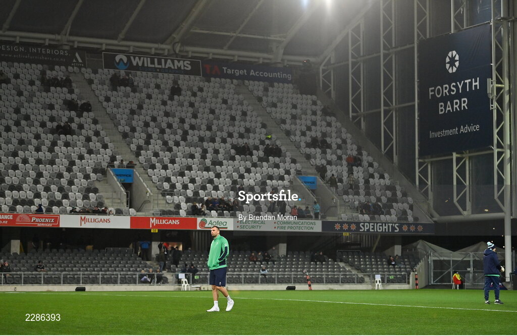 9 July 2022; Tadhg Beirne of Ireland walks the pitch before the Steinlager Series match between the New Zealand and Ireland at the Forsyth Barr Stadium in Dunedin, New Zealand. Photo by Brendan Moran/Sportsfile