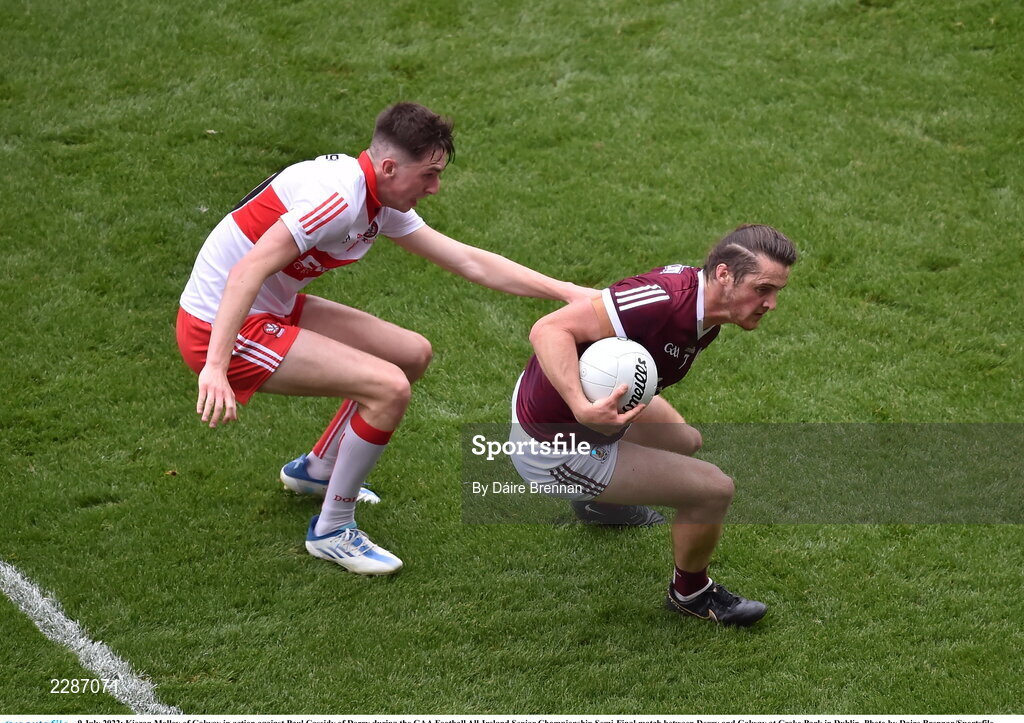 9 July 2022; Kieran Molloy of Galway in action against Paul Cassidy of Derry during the GAA Football All-Ireland Senior Championship Semi-Final match between Derry and Galway at Croke Park in Dublin. Photo by Daire Brennan/Sportsfile