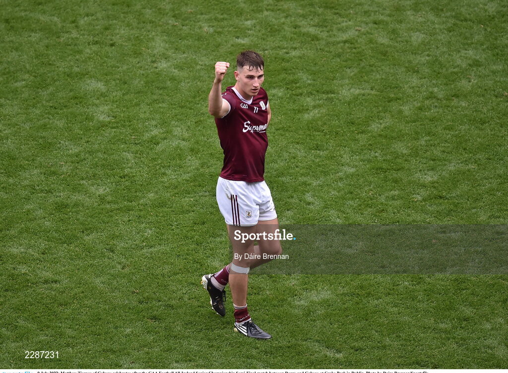 9 July 2022; Matthew Tierney of Galway celebrates after the GAA Football All-Ireland Senior Championship Semi-Final match between Derry and Galway at Croke Park in Dublin. Photo by Daire Brennan/Sportsfile