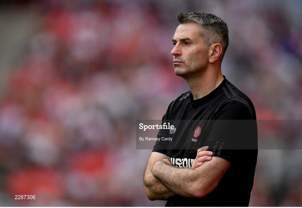 9 July 2022; Derry manager Rory Gallagher during the GAA Football All-Ireland Senior Championship Semi-Final match between Derry and Galway at Croke Park in Dublin. Photo by Ramsey Cardy/Sportsfile