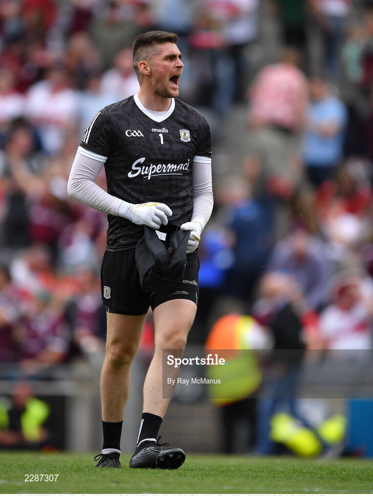 9 July 2022; Galway goalkeeper Connor Gleeson celebrates after the GAA Football All-Ireland Senior Championship Semi-Final match between Derry and Galway at Croke Park in Dublin. Photo by Ray McManus/Sportsfile