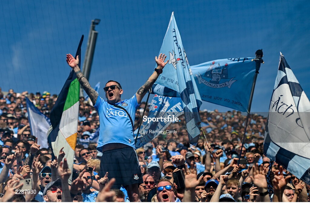 10 July 2022; Dublin supporters on Hill 16 during the GAA Football All-Ireland Senior Championship Semi-Final match between Dublin and Kerry at Croke Park in Dublin. Photo by Ramsey Cardy/Sportsfile