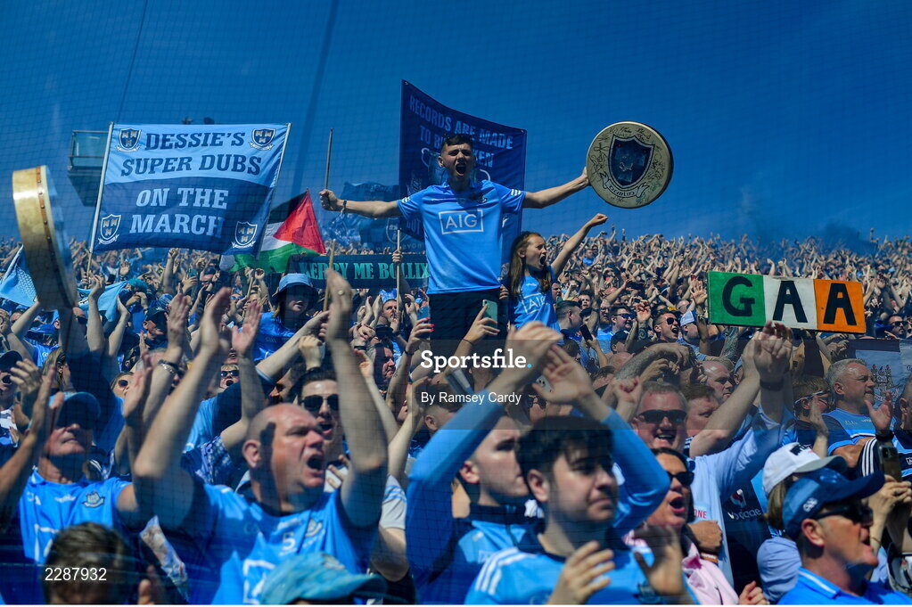 10 July 2022; Dublin supporters on Hill 16 during the GAA Football All-Ireland Senior Championship Semi-Final match between Dublin and Kerry at Croke Park in Dublin. Photo by Ramsey Cardy/Sportsfile