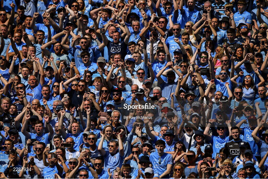 10 July 2022; Dublin supporters on Hill 16 during the GAA Football All-Ireland Senior Championship Semi-Final match between Dublin and Kerry at Croke Park in Dublin. Photo by Ray McManus/Sportsfile