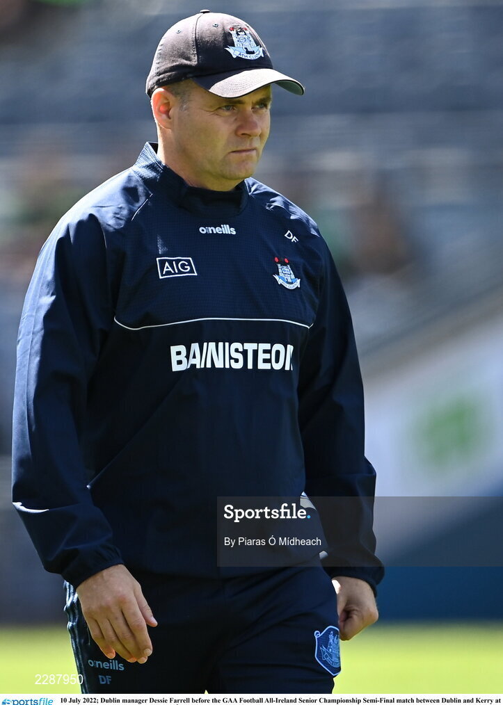 10 July 2022; Dublin manager Dessie Farrell before the GAA Football All-Ireland Senior Championship Semi-Final match between Dublin and Kerry at Croke Park in Dublin. Photo by Piaras Ó Mídheach/Sportsfile