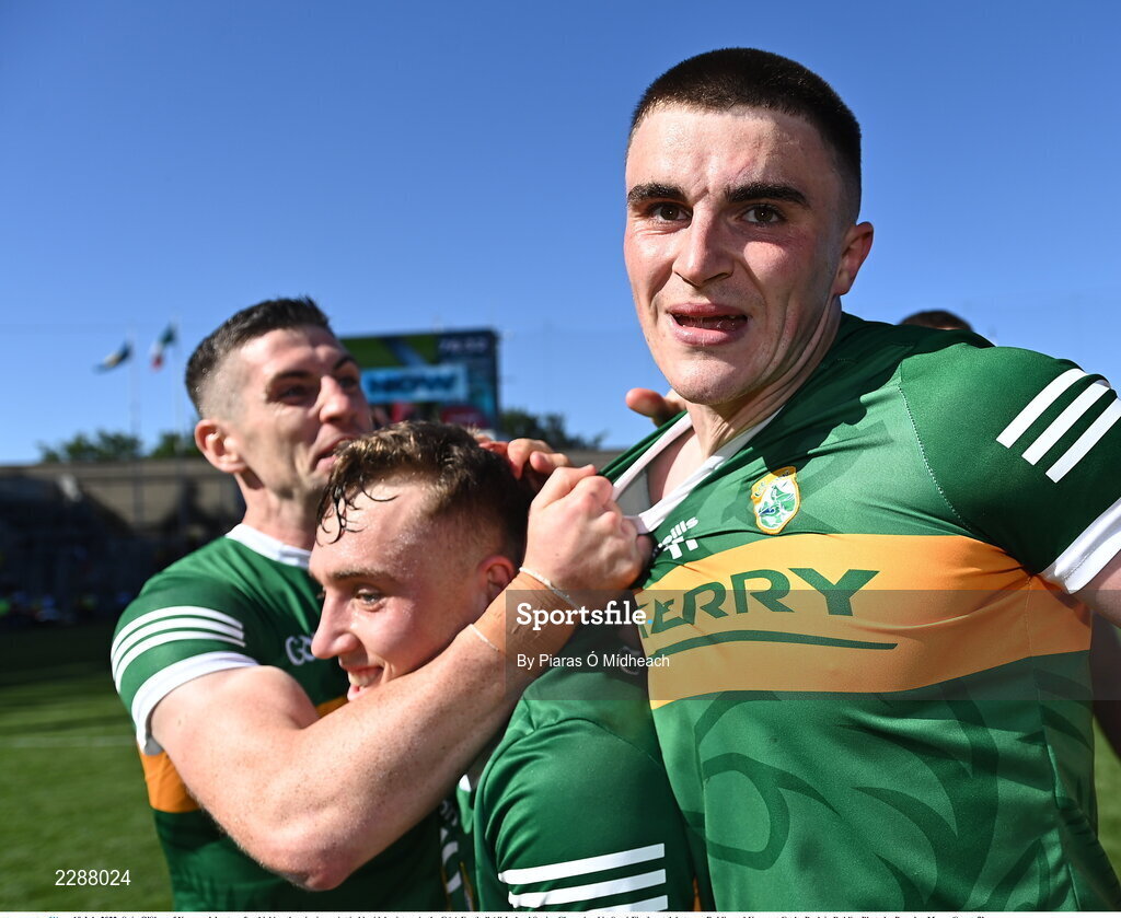 10 July 2022; Seán O'Shea of Kerry celebrates after kicking the winning point in his side's victory in the GAA Football All-Ireland Senior Championship Semi-Final match between Dublin and Kerry at Croke Park in Dublin. Photo by Piaras Ó Mídheach/Sportsfile
