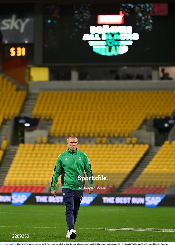 12 July 2022; Ireland captain Keith Earls walk the pitch before the match between the Maori All Blacks and Ireland at the Sky Stadium in Wellington, New Zealand. Photo by Brendan Moran/Sportsfile