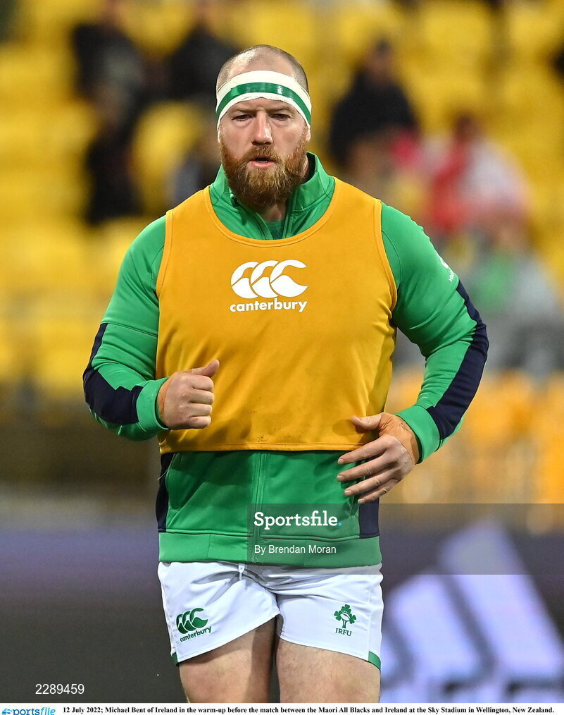 12 July 2022; Michael Bent of Ireland in the warm-up before the match between the Maori All Blacks and Ireland at the Sky Stadium in Wellington, New Zealand. Photo by Brendan Moran/Sportsfile