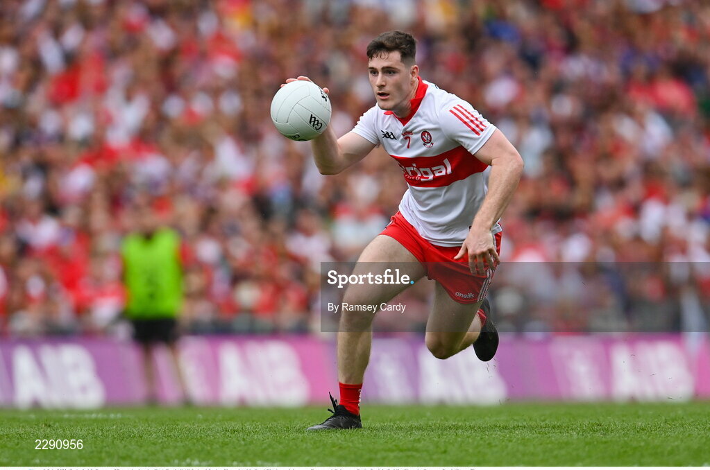 9 July 2022; Padraig McGrogan of Derry during the GAA Football All-Ireland Senior Championship Semi-Final match between Derry and Galway at Croke Park in Dublin. Photo by Ramsey Cardy/Sportsfile