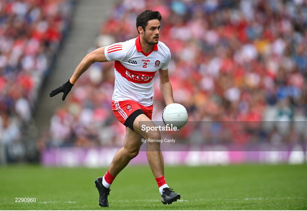 9 July 2022; Christopher McKaigue of Derry during the GAA Football All-Ireland Senior Championship Semi-Final match between Derry and Galway at Croke Park in Dublin. Photo by Ramsey Cardy/Sportsfile