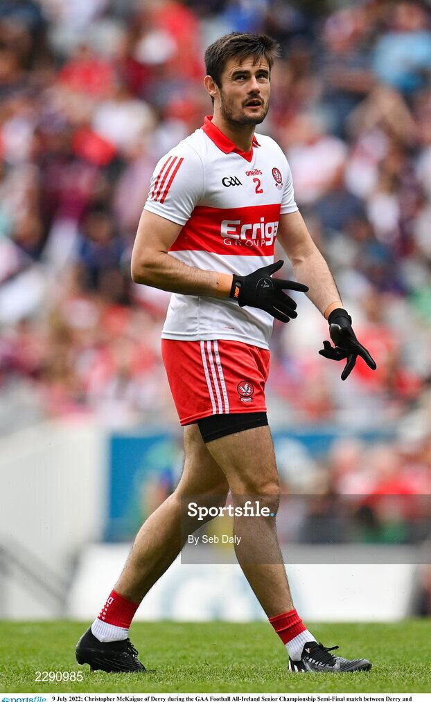 9 July 2022; Christopher McKaigue of Derry during the GAA Football All-Ireland Senior Championship Semi-Final match between Derry and Galway at Croke Park in Dublin. Photo by Seb Daly/Sportsfile