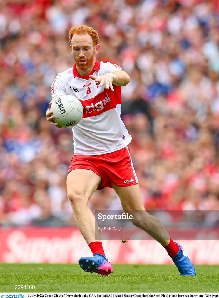 9 July 2022; Conor Glass of Derry during the GAA Football All-Ireland Senior Championship Semi-Final match between Derry and Galway at Croke Park in Dublin. Photo by Seb Daly/Sportsfile