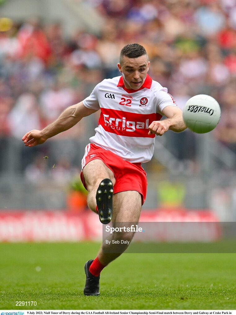 9 July 2022; Niall Toner of Derry during the GAA Football All-Ireland Senior Championship Semi-Final match between Derry and Galway at Croke Park in Dublin. Photo by Seb Daly/Sportsfile