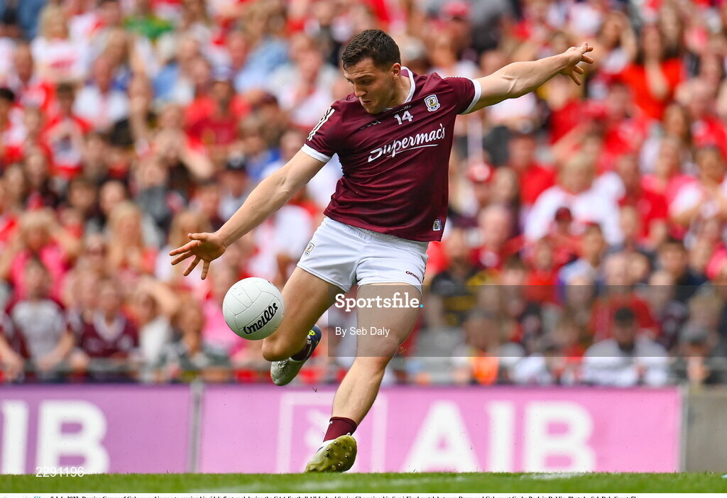 9 July 2022; Damien Comer of Galway on his way to scoring his side's first goal during the GAA Football All-Ireland Senior Championship Semi-Final match between Derry and Galway at Croke Park in Dublin. Photo by Seb Daly/Sportsfile