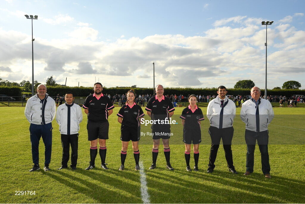 13 July 2022; Referee Justin Murphy and his officials before the 2022 All-Ireland U16 B Final between Kildare and Tipperary at Crettyard, Co. Laois. Photo by Ray McManus/Sportsfile