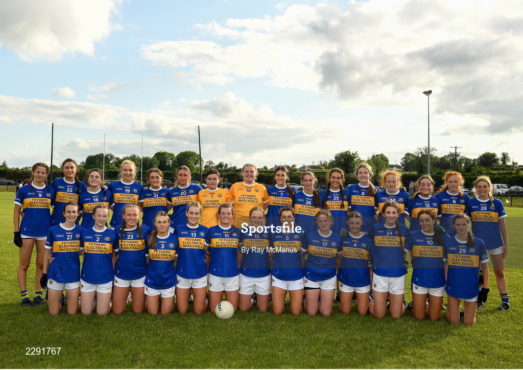13 July 2022; The Tipperary squad before the 2022 All-Ireland U16 B Final between Kildare and Tipperary at Crettyard, Co. Laois. Photo by Ray McManus/Sportsfile
