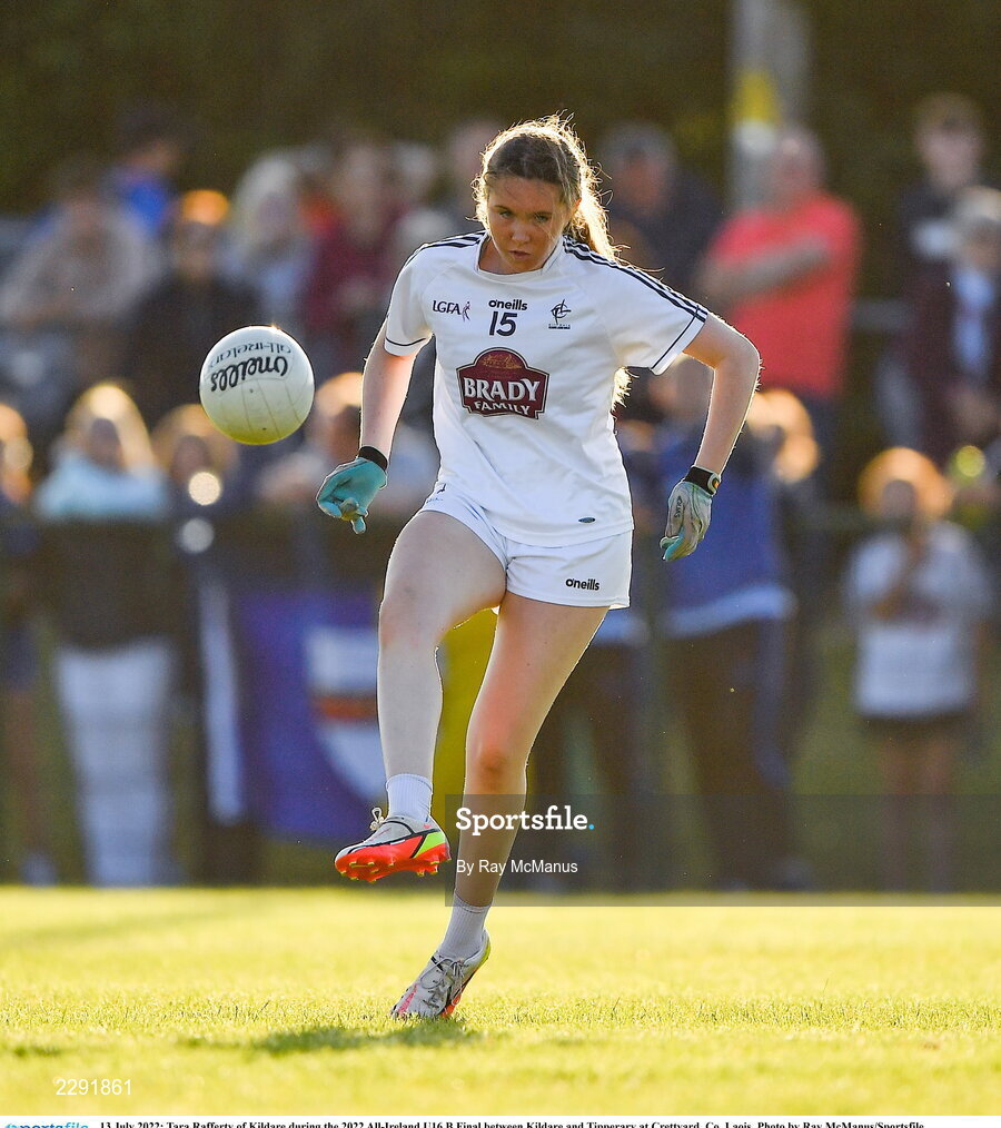 13 July 2022; Tara Rafferty of Kildare during the 2022 All-Ireland U16 B Final between Kildare and Tipperary at Crettyard, Co. Laois. Photo by Ray McManus/Sportsfile