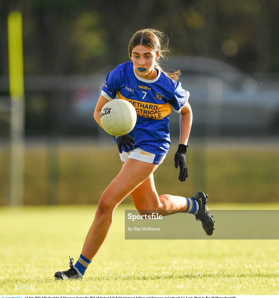 13 July 2022; Ellie Franklin of Tipperary during the 2022 All-Ireland U16 B Final between Kildare and Tipperary at Crettyard, Co. Laois. Photo by Ray McManus/Sportsfile
