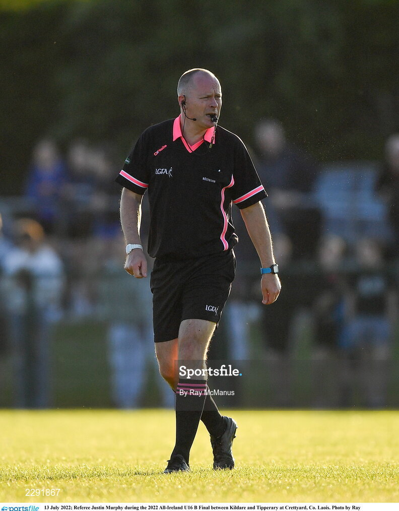 13 July 2022; Referee Justin Murphy during the 2022 All-Ireland U16 B Final between Kildare and Tipperary at Crettyard, Co. Laois. Photo by Ray McManus/Sportsfile