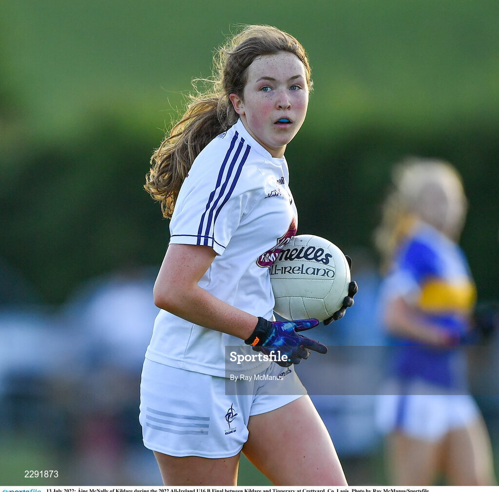 13 July 2022; Áine McNally of Kildare during the 2022 All-Ireland U16 B Final between Kildare and Tipperary at Crettyard, Co. Laois. Photo by Ray McManus/Sportsfile